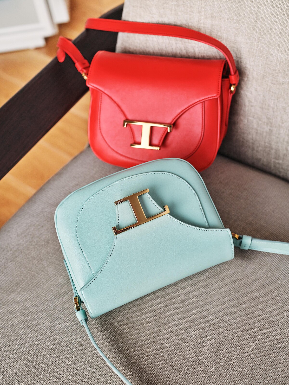 設計:金色T字釦式開闔裝飾,T代表著Tod’s,也是T for Time,超越時間Timeless的寓意。色彩多樣,有超越時間、無季別性搭配考量的大地色系,也有適合夏日配搭的粉紅、水藍款式,也有與帆布材質拼接的夏日款。