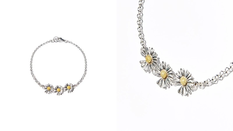 Peaceminusone最新春夏系列包含黑色小羊皮手機袋,除了壓印上品牌Logo之外,更印上了小雛菊於手袋中央。還有大小不同的別針組合,特意將小雛菊的花瓣剝落幾片,非常符合權志龍的作風。最不能錯過的絕對是小雛菊手環,以銀製的雛菊組成,細看手環的扣合設計正是Peaceminusone的品牌Logo。