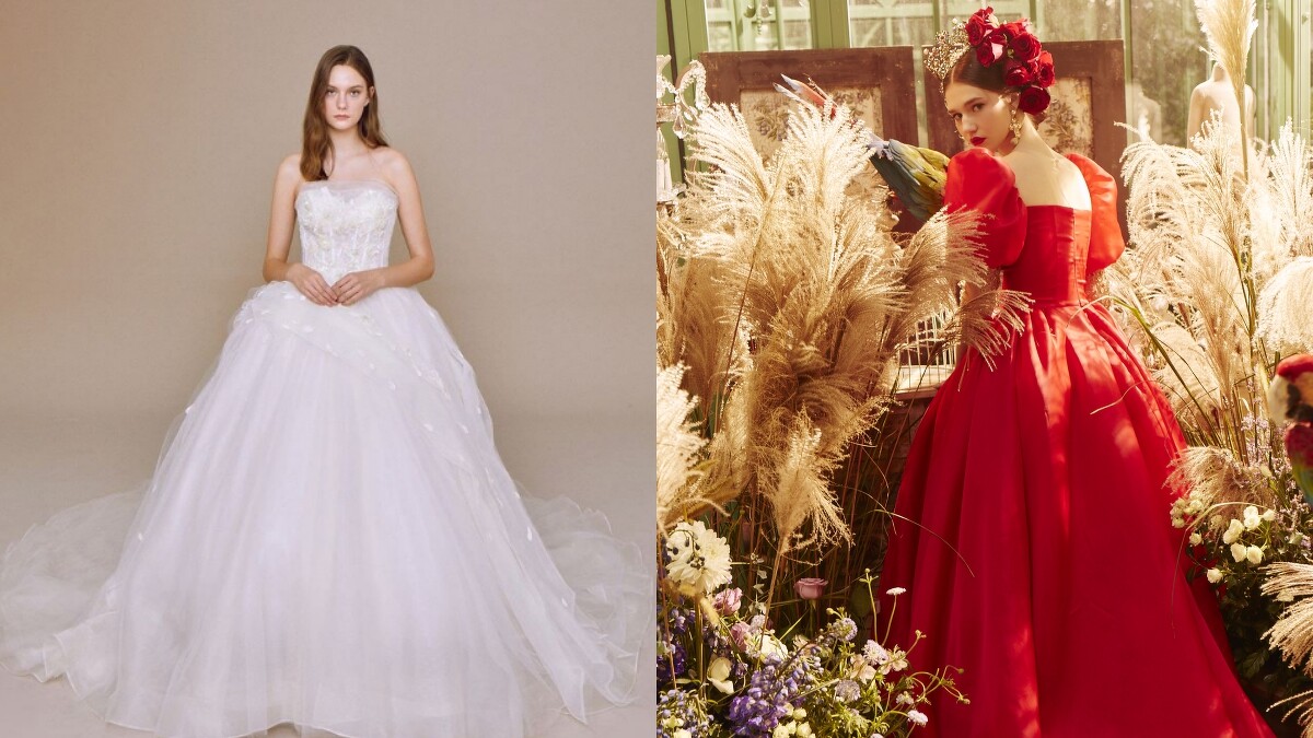 隨著流行趨勢的變化與世代的改變,白色婚紗不在是首選色彩,鼠尾草綠、雲朵藍…甚至玫瑰紅,都被準新娘納入清單選項中。為此,Sophia Ritz特地推出一款擁有復古宮廷澎袖加上束腰的鮮紅色禮服,將女孩的白皙肌膚完美襯托,同時不失莊嚴的古典氣息。