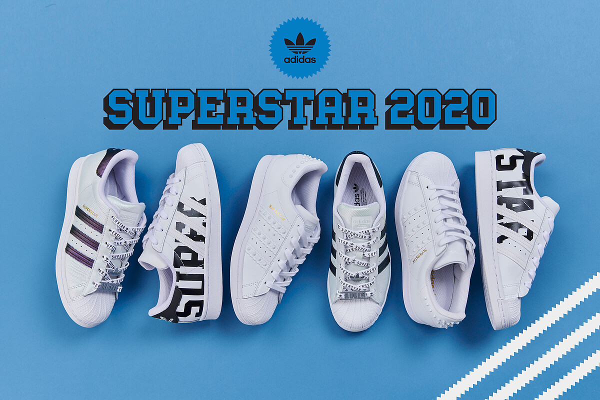 Superstar Signature系列鞋款,以鮮明黑白作為基礎,將大膽創意全部投注到鞋身兩側,將鞋款名稱拆解成「SUPER」和「STAR」分印於內外兩側,行走間不用刻意秀就能自成焦點,完美傳遞出Superstar鞋款推出至今仍舊受人矚目大愛的地位性。