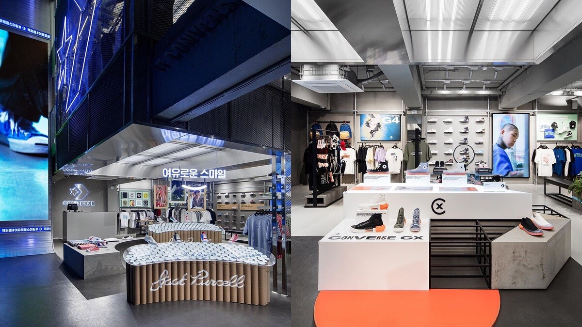Converse弘大旗艦店分成三層樓,以銀色、科技的視覺打造整體購物空間,一樓提供當季最新系列、基本鞋款,包含Chuck 70、Chuck Taylor…等,二樓則是特殊限定鞋款、難搶的聯名鞋款,而三樓正是可以打造獨特鞋款的「Converse by You」。
