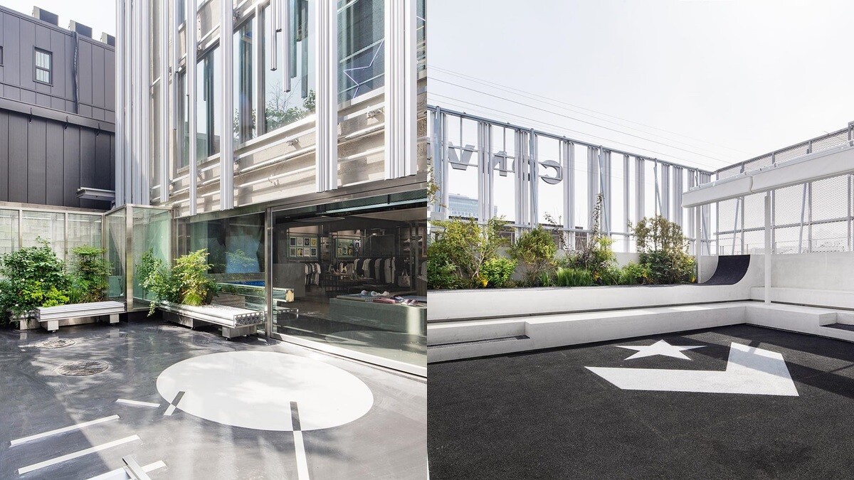 值得一提的是,這間Converse旗艦店頂樓還有開放式的大露台,綠色植栽加上白色建築的結合,有讓人宛如來到咖啡廳的錯覺。
