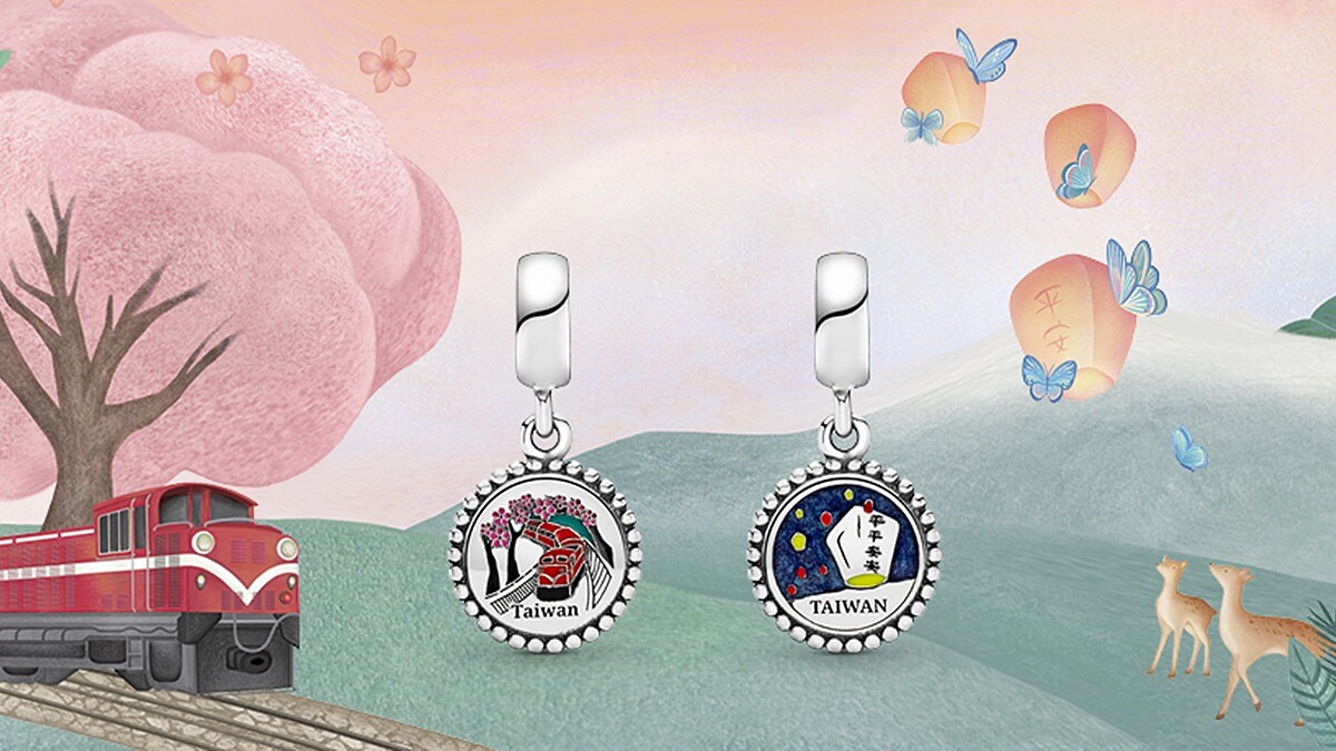 Pandora以熱門景點阿里山、平溪為靈感,將能阿里山的鐵道小火車,以及象徵平溪的放天燈活動,繪製成小巧、細緻的串飾。其中鐵道小火車串飾以925銀打造,搭配紅色琺瑯鐵道火車於櫻花森林中緩緩行駛。祈福天燈串飾則以藍色琺瑯呈現夜晚的天空,冉冉升起的天燈猶如點點繁星照亮台灣,天燈上更寫著「平平安安」的字樣。