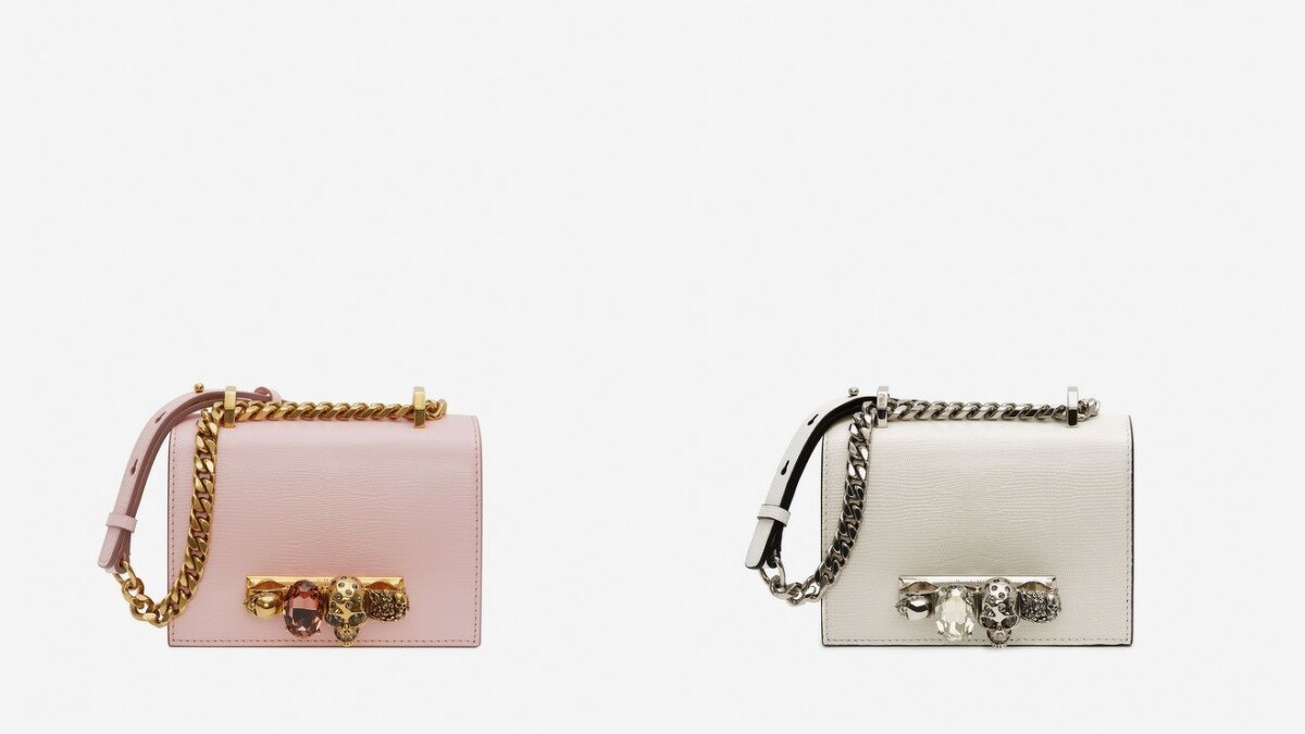2018年早秋系列中首度問世的The Jewelled Satchel包款,自推出後每季都會以不同色系、主題重新演繹,是Alexander McQueen主打的手袋之一,而全智賢身上揹帶的則是2020年春夏系列登場的迷你版Mini Jewelled Satchel,同樣具備標誌性的Alexander McQueen骷髗頭珠寶,並以手提把設計為特色,更附有金屬鍊帶可供斜揹,包含玫瑰粉、天空藍、象牙白、時髦黑以及壓印蜥蜴紋路包款。