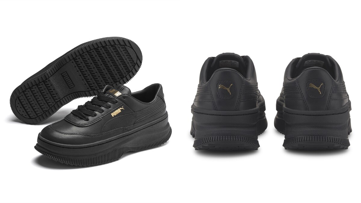 Puma以全新龐克女力出發,運用全白皮革打造鞋面,加入小金標Puma Logo 點綴,而品牌標誌性的Puma Formstrip則以經典素雅裸白色呈現,同時搭載橡膠外底帶來絕佳的抓地力,而搶眼的流線型鬆糕狀厚實大底,能完美拉長腿部曲線,為女孩們帶來震攝全場的超大氣場。