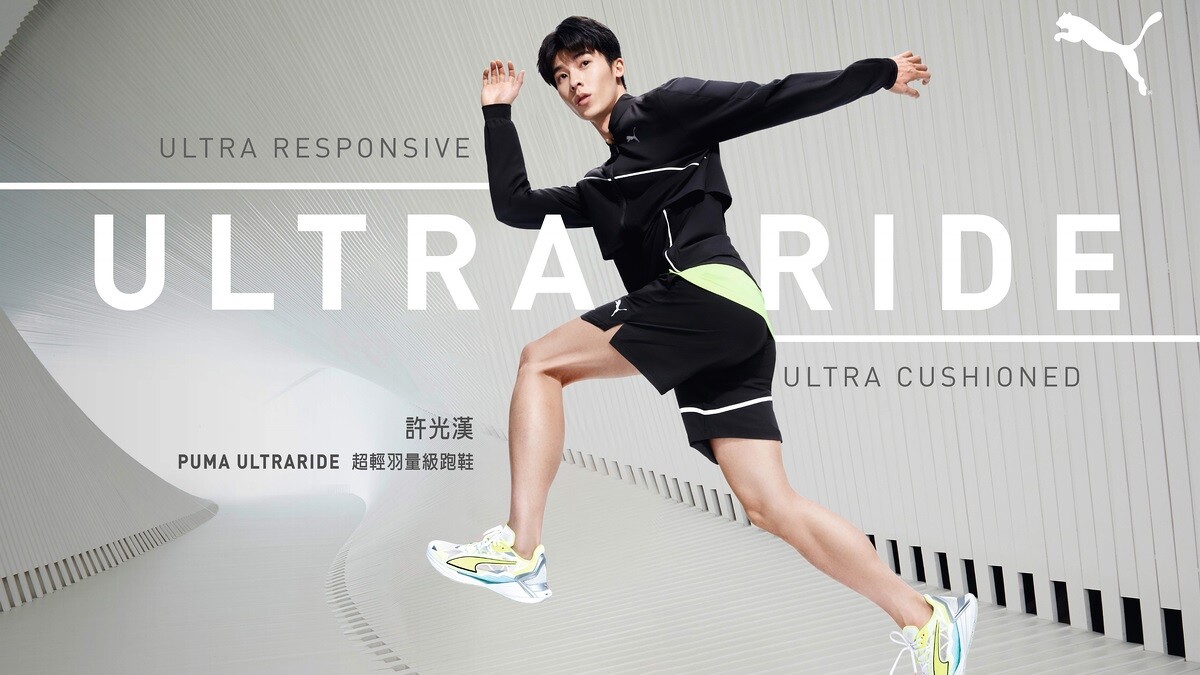 Puma宣布許光漢擔任品牌大使之際,品牌也推出全新UltraRide超輕羽量級跑鞋,以Less Is More作為設計理念,採用特殊鏤空減重設計,具備高避震、高能量回饋、輕羽級重量等三大特色,鞋底則配置高效能Proplate動力推進區,有效縮短前後腳掌的反應時間,鞋面則運用高透氣網眼裸透材質,能加快雙腳熱氣排出。Puma UltraRide超輕羽量級跑鞋,NT3,280