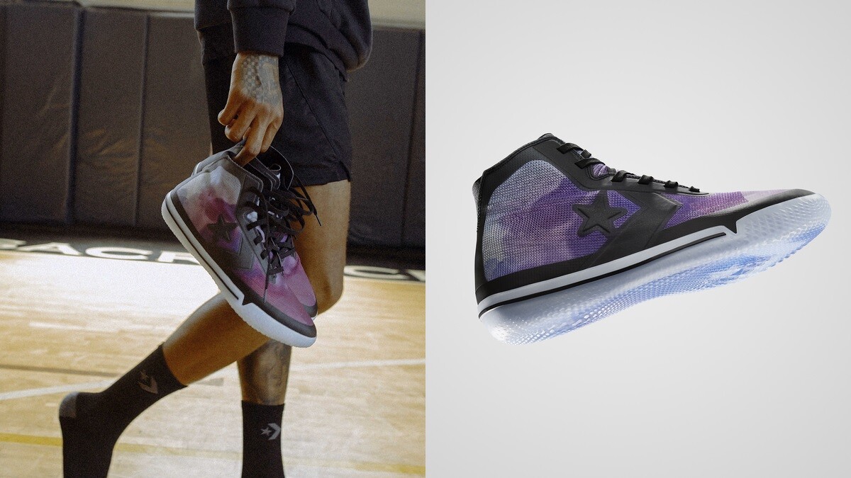 高筒鞋款的All Star Pro BB 「Hazy」是以藍紫色調的渲染風格來設計鞋面,搭配著煙燻感的鞋底,除了完整詮釋Kelly Oubre Jr.對於迷幻搖滾的喜愛,也表達了Kelly Oubre Jr. 極具感染力的變幻球風。