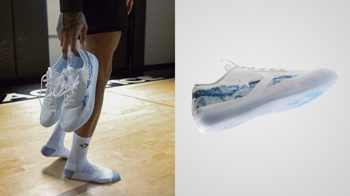 另一款低筒All Star Pro BB 「Wavy」則是以Kelly Oubre Jr. 的暱稱「Tsunami Papi」為靈感來設計,其中因為Tsunami 源自日文的津波 (意指港口內的巨浪 ),所以採用日本著名的浮世繪來呈現在鞋面上,展現了這位籃球新秀的個人風格。