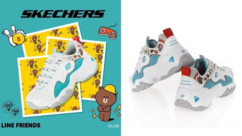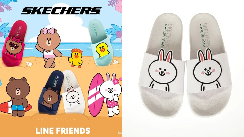 前陣子才推出的美少女戰士聯名鞋款,美國運動品牌Skechers這回找來風靡全球的Line Friends,熊大、兔兔、熊美、莎莉等人氣角色融入經典老爹鞋、夏日拖鞋款,推出可愛、萌趣的聯名系列,身為粉絲的你可不能錯過。