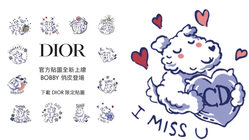 為了歡慶Dior台灣Line官方帳號上線,品牌特地推出Bobby動態貼圖提供免費下載。