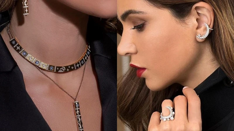 說到占星一定會聯想到古埃及的占星術,這次APM Monaco就以埃及為這個系列的設計主題,將獅子、月亮、星星、聖甲蟲...等,對於埃及非常具有象徵意義的元素通通放到飾品上,像是星月符號的項鍊、鑲滿水鑽的獅子手環、彎月造型戒指、不對稱的聖甲蟲耳環...等,都是為穿搭增添華麗個性的好幫手。