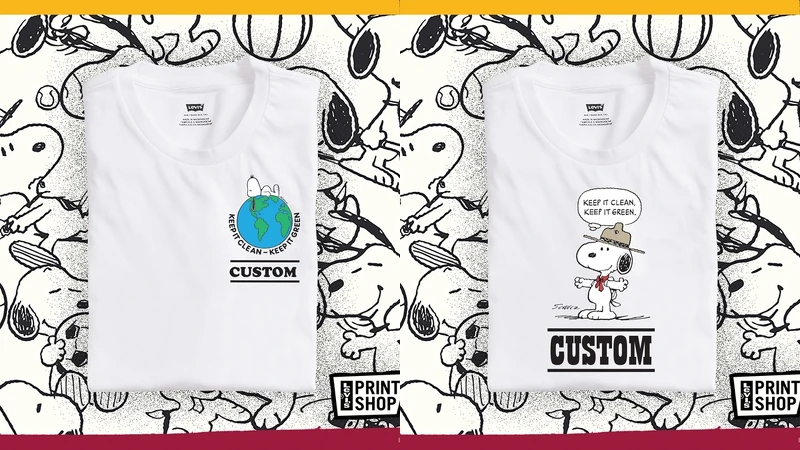 值得一提的是,此次聯名系列也加入Levi’s Print Shop專屬主題圖案中,呆萌史努比邀請大家一同守護地球整潔,可於Levi’s Print Shop中輸入喜歡的英文字母,設計獨一無二的客製TEE。