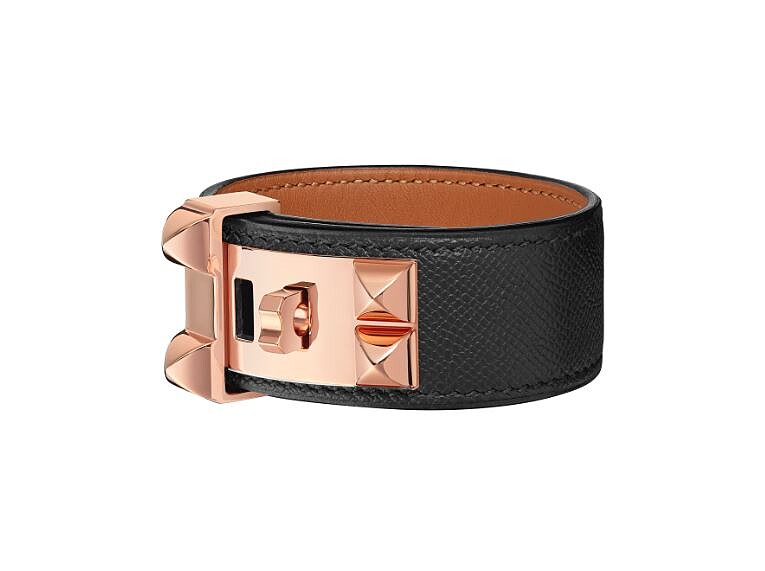 源自1949年的Collier de Chien金屬皮革系列,全新小牛皮手環,在設計上保有簡潔俐落的線條,搭配甜蜜的玫瑰金配色與現代美學,讓雋永的Collier de Chien系列手環,更彰顯特有的魅力與大膽優雅感。(NT27,000)