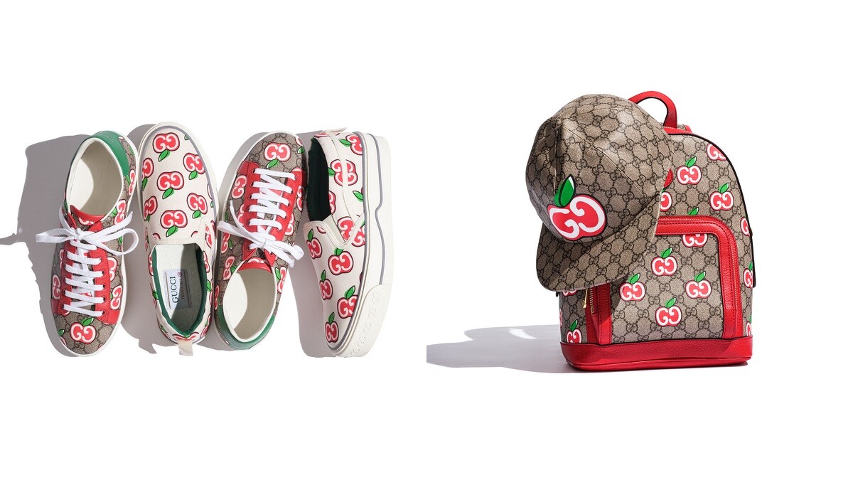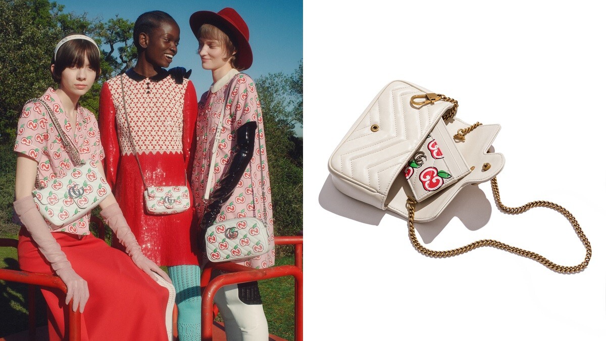 為了迎接一年一度的七夕情人節,Gucci創意總監Alessandro Michele特地從古希臘神話中擷取靈感,天神宙斯與赫拉的婚禮上,收到來自大地女神蓋亞餽贈的蘋果樹,充滿神秘魔力的蘋果樹自此被巨龍守護在遙遠的聖園永不凋謝,也代表永恆不垂的愛情。於是,Gucci七夕情人節限定系列,便將品牌標誌性的雙G Logo結合蘋果印花圖案,透過手繪童趣風格呈現,包含GG Marmont小皮件、相機包、鍊帶包、Padlock系列肩背包、鞋履系列等。