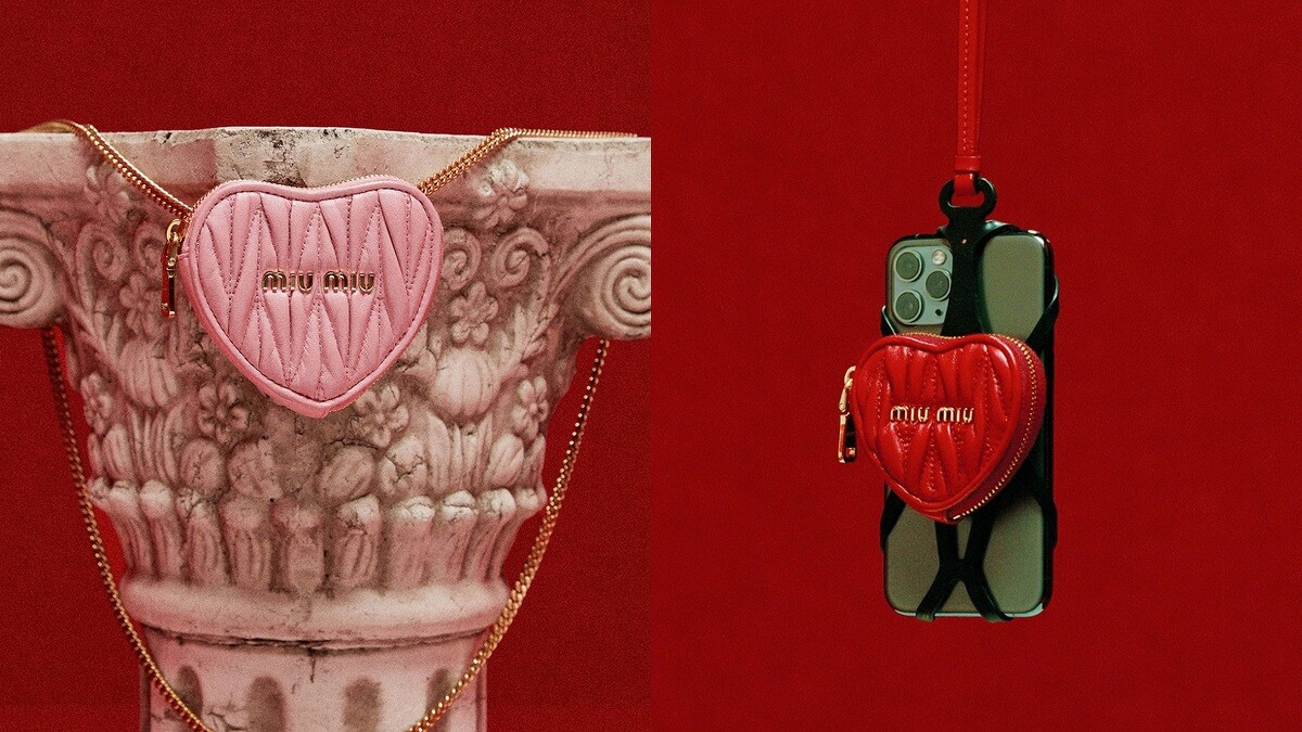 迎來一年一次的七夕情人節,Miu Miu精選品牌標誌性的抓皺Matelassé皮革,打造Miu Belle、Miu Coffer手袋、粉色愛心錢包以及愛心皮革多功能手機套,其中最吸睛的,莫過於背後有愛心零錢包的手機套,採用彈性橡膠繫帶打造而成,附有皮革掛繩設計,可適用於IPhone機型的手機,包含IPhone11、IPhone11 Pro、IPhone XS Max…等,方便女孩們外出旅行可掛於胸前使用。