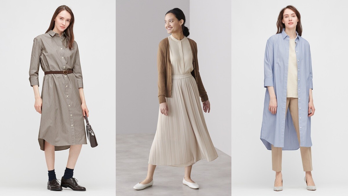 若想透過服飾減齡,Uniqlo全新細褶褲裙,不僅剪裁俐落,且設計簡約高尚,為輕熟女性職場穿搭增添柔美氣質,像是水藍色柔棉條紋襯衫式洋裝,搭配俏皮活潑的七分袖,輕鬆打造青春日系少女感。