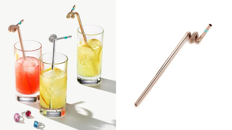 隨後,同為LVMH集團的Tiffany&Co.也推出名為「Crazy Straw」的環保吸管,採用純銀材質打造,共有銀色、金色、玫瑰金3種色選,吸管特別設計成彎曲造型,並在吸嘴處裝飾上Tiffany標誌性的藍色,吸睛度十足。不過這款吸管可不便宜,光是最經典的銀色要價250美元,相當於台幣7,500元,女孩們最愛的玫瑰金則售價高達台幣1萬。
