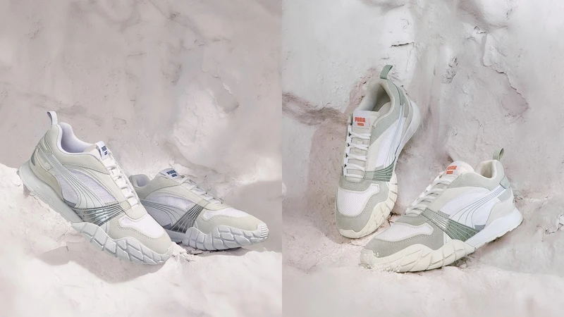 Puma Kyron擁有流動曲線的前衛輪廓,鞋面採用網眼、皮革與麂皮絨布拼接而成,鞋底則是以橡膠包覆並由大小方格拼湊增添亮點,搭載輕量Eva中底及柔軟舒適PU鞋墊,展現絕佳的穿著體驗。Puma為迎接夏季推出霧灰橄欖綠、霧灰奶茶2雙全新配色。全新Puma Kyron已於專賣店上架,每雙售價為台幣3,580元。