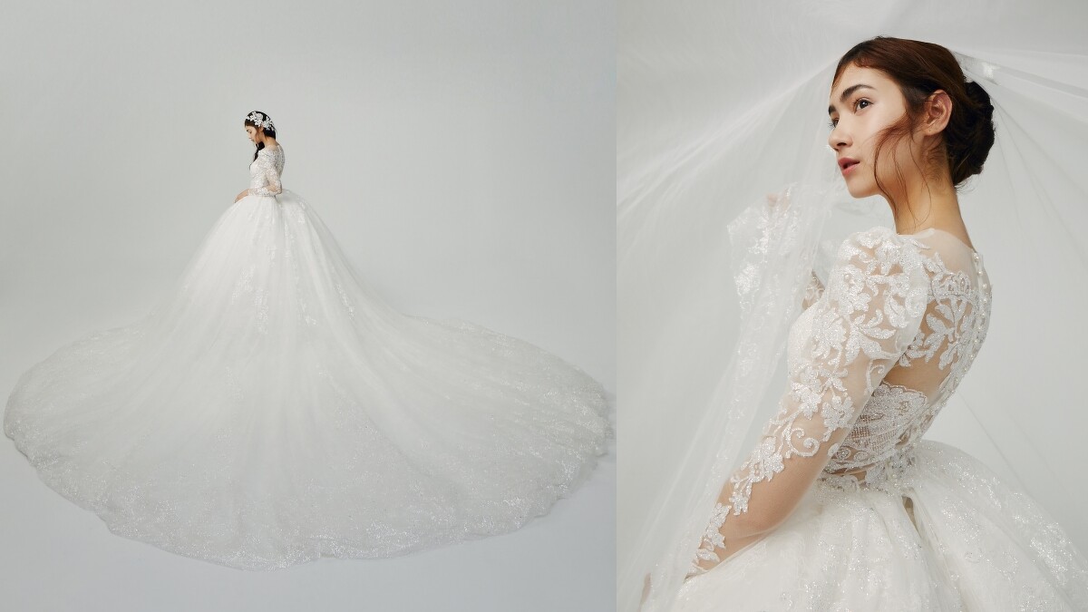 看完上述這些款式依然鍾愛古典氣質婚紗的話,那系列中的Claire勢必會符合你的喜好需求;不僅有蕾絲製成的公主長衣袖,大澎裙的經典設計更替該件禮服賦上浪漫優雅韻味,勢必婚禮上所有嘉賓都會被你給吸引。