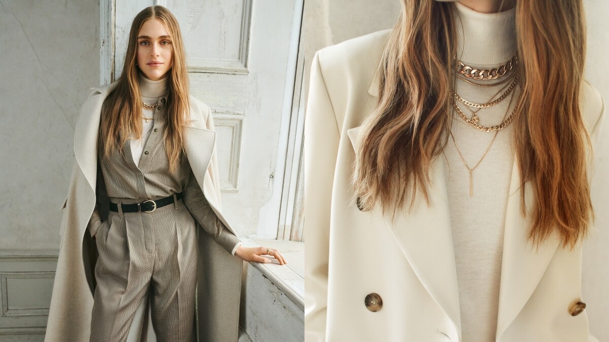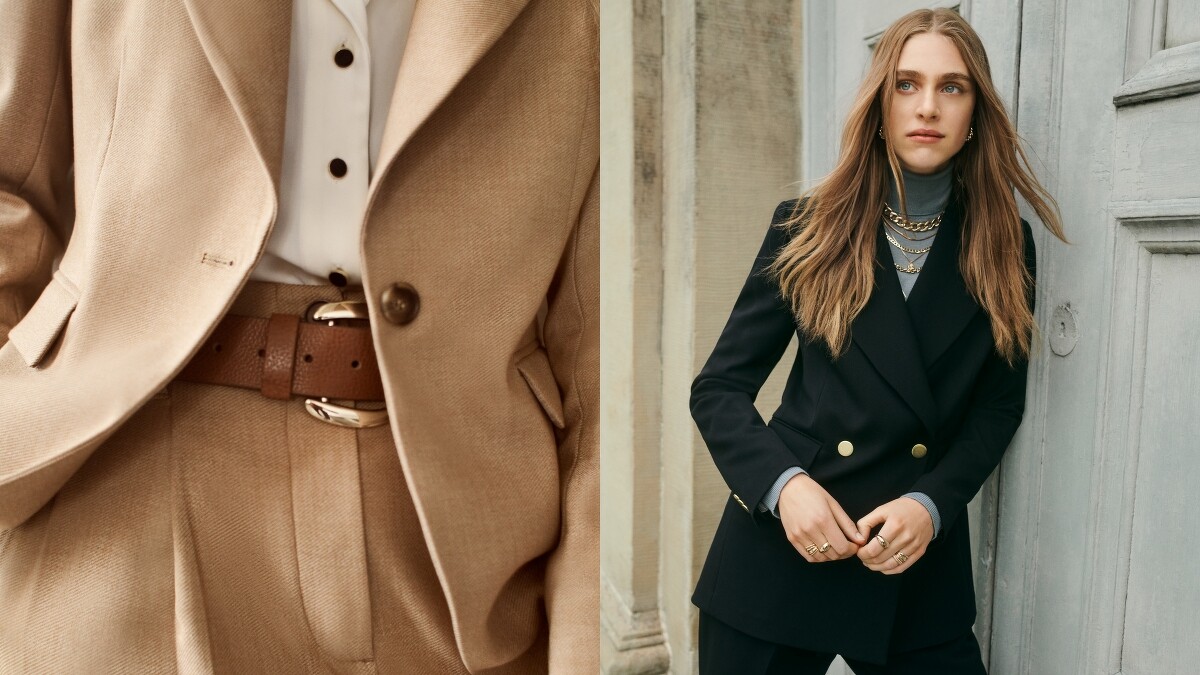 色彩方面,為了使女性能輕鬆打造初簡約且不過時的穿搭造型,特地選用了成熟且成穩的色調,好比米黃色、海軍藍、暗藍色及酒紅色,替西裝外套等服飾注入溫雅氣質,此外,和細條紋與不規則格紋的搭配正好相得益彰,絕對能藉由該系列滿足平日或上班穿搭需求!