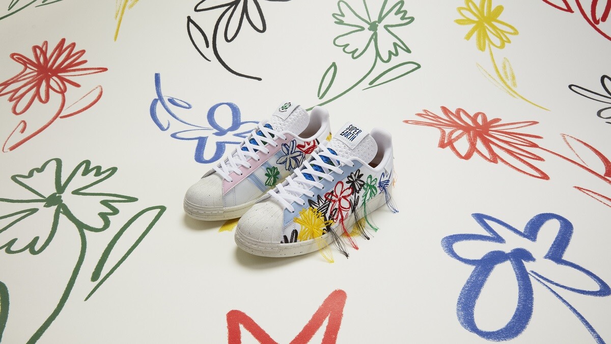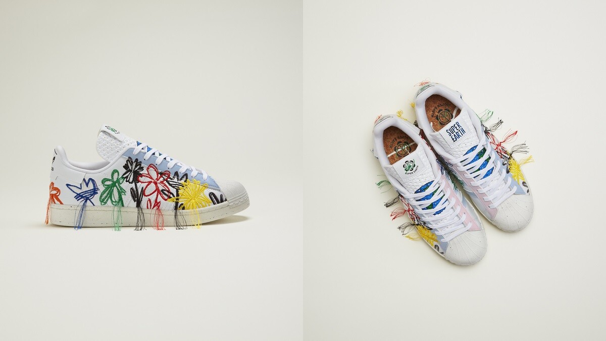 全新登場的Superearth鞋款是Sean Wotherspoon結合對球鞋、潮流及環保的熱愛打造而成,以繽紛配色注入立體刺繡設計,鞋身上有著可愛花朵刺繡圖案,尾端繡線採不收邊流蘇狀呈現,鞋舌也不同於其它鞋款,加入透氣孔細節,還有軟木塞製成的鞋墊。值得一提的是,Superearth是adidas旗下所有球鞋系列中唯一不使用任何動物原料打造的「全素」球鞋。
