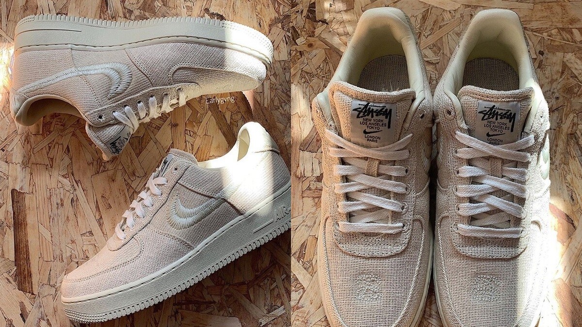 距離前一個聯名不到一個月,網路上又再曝光全新創作,以Nike經典Air Force 1為原型,換上女孩們難以抵擋的溫柔奶茶色調,搭配Nike標誌性刺繡Swoosh Logo,並於鞋舌上印有雙方品牌標誌,注入Stüssy慣用的New York、Los Angeles、Tokyo、London、Paris等五大時尚之都字樣,在面料上則選用棉麻質感的紡織材質打造而成,其仿舊感的設計為AF1增添復古氛圍。