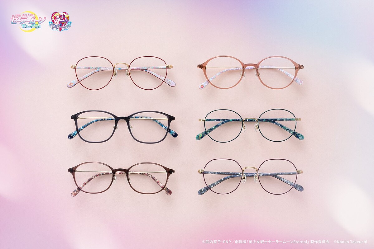 光學眼鏡一共6款,包含金屬細框、黑色鏡框到半透明的膠框皆具備,每副眼鏡的鏡架上注入美少女戰士各個角色的代表圖案,十分俏皮、可愛。