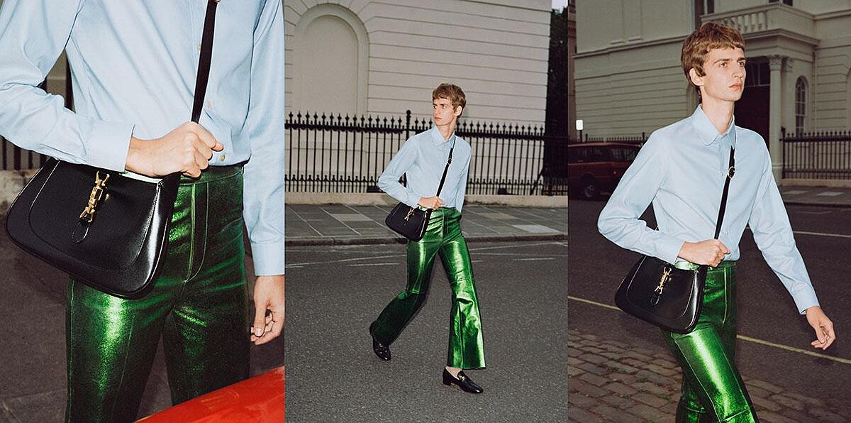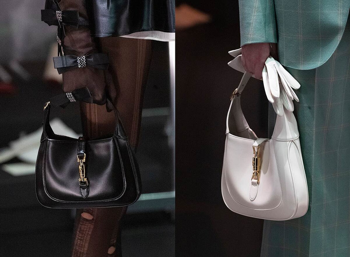 以各種皮革材質設計出多變外觀樣貌,搭配馬銜鍊Gucci的精緻工藝細節創作巧思,更讓Gucci奠下了一線精品的基礎地位,更是替奢華旅人的生活態度立下典範。也因此歷任Gucci設計師都會從資料庫中汲取靈感將經典創作蛻變成新穎樣貌。最新版本的「Jackie 1961」則由創意總監Alessandro Michele操刀,他將經典設計的嚮往與當代思維完美融合,以剛柔並濟突破傳統配飾的既有框架,在2020年秋冬男裝系列時裝秀中首度推出「Jackie 1961」,賦予了這款別具品牌特色的包款截然不同的新個性,尺寸更為小巧易於搭配西裝、頹廢風或是窄身服飾…等男女時裝秀造型,讓「Jackie 1961」有了不受性別侷限的全新註解。