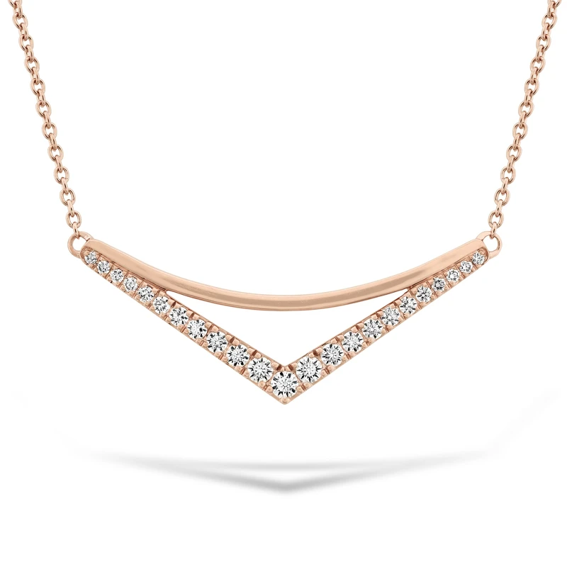 同樣延用同名婚紗的特色:交岔與V字元素,腰身抓摺等等。項鍊與耳環設計還融入代表擁抱與親吻的”XO”輪廓,是簡單耐看又精美的日常珠寶。