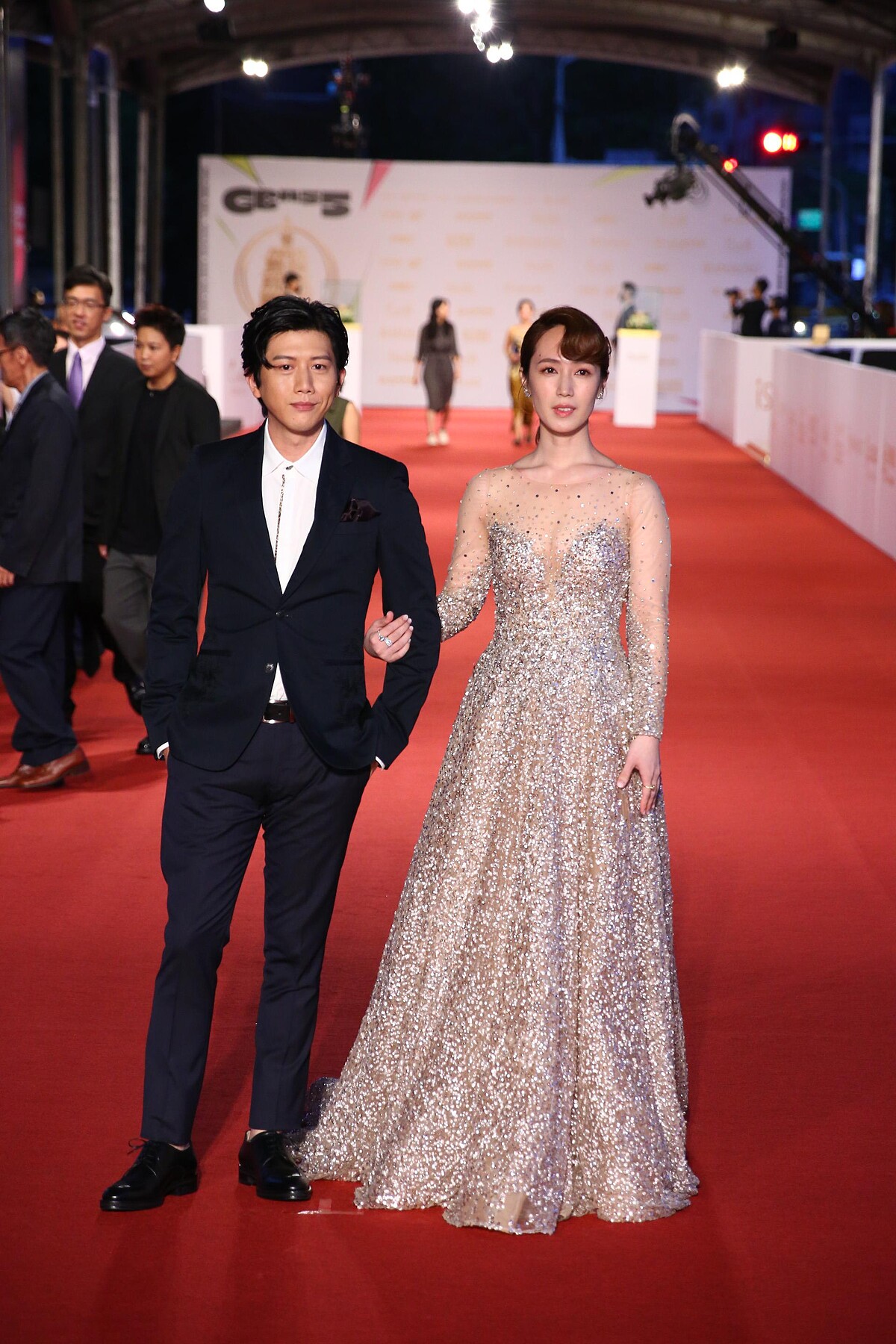 二度入圍金鐘獎的小薰(黃瀞怡),有別於2013年的粉嫩緞面開衩禮服,這回她捨棄過去的大膽風格,改以典雅的亮片晚宴服登場,看得出小薰已從清新的女孩形象畢業,多了股成熟韻味。另一旁的男伴莫子儀,以簡約俐落的黑色西裝亮相,展現成熟穩重的男人風味。