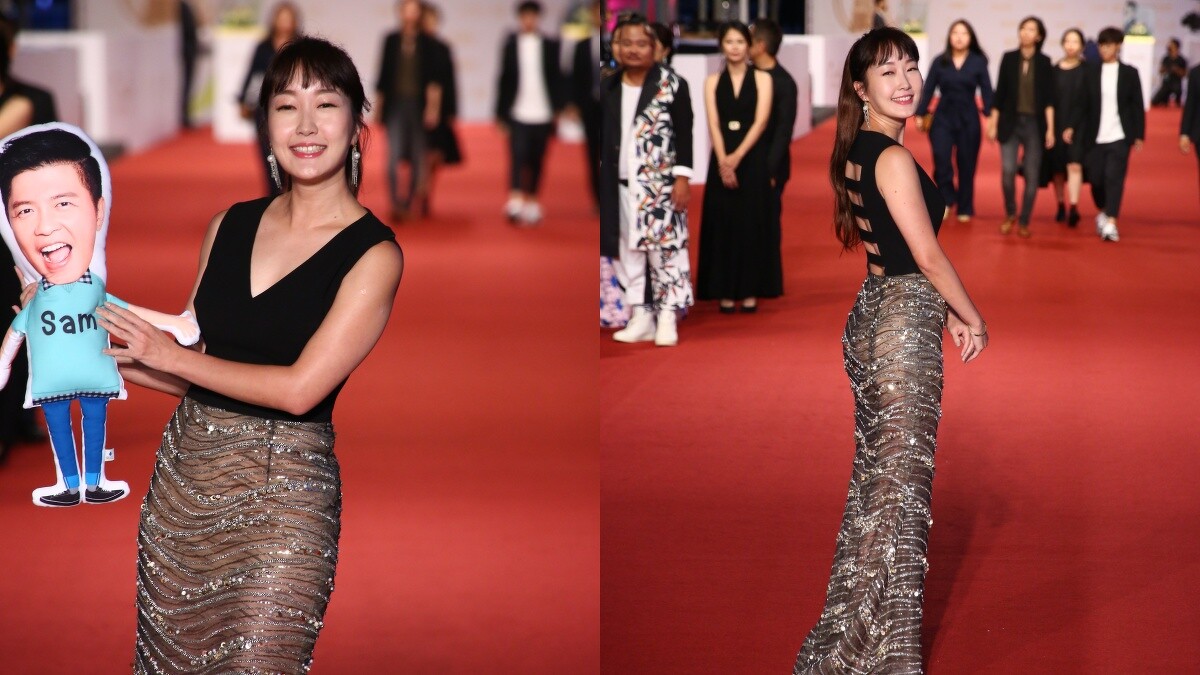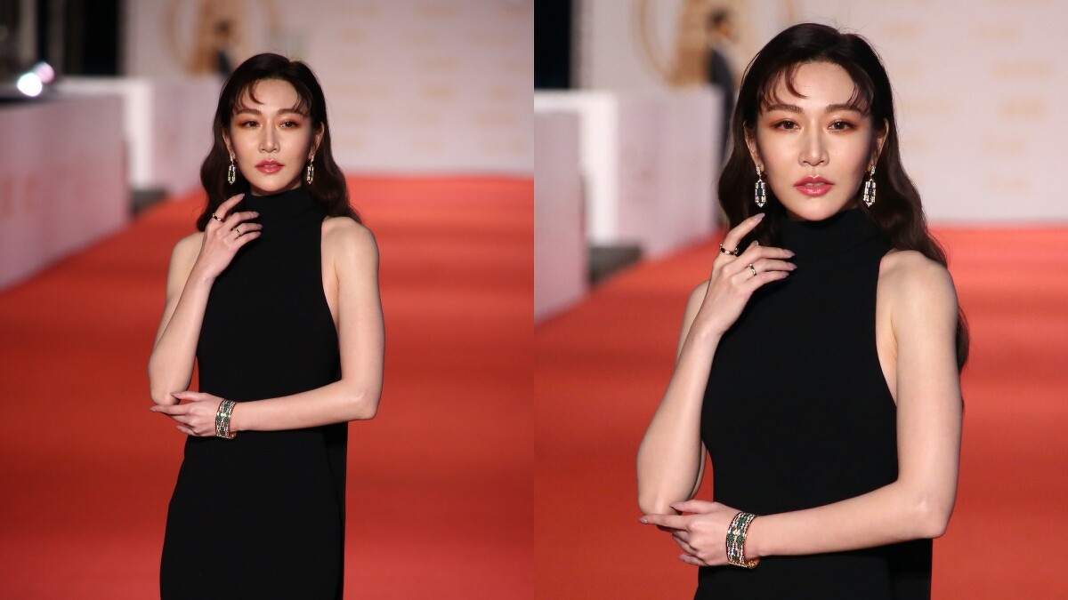 外型亮麗的莫允雯在紅毯上選擇香檳金禮服亮相,低胸的設計加上微透視的長裙,宛如是希臘女神般氣場十足。
