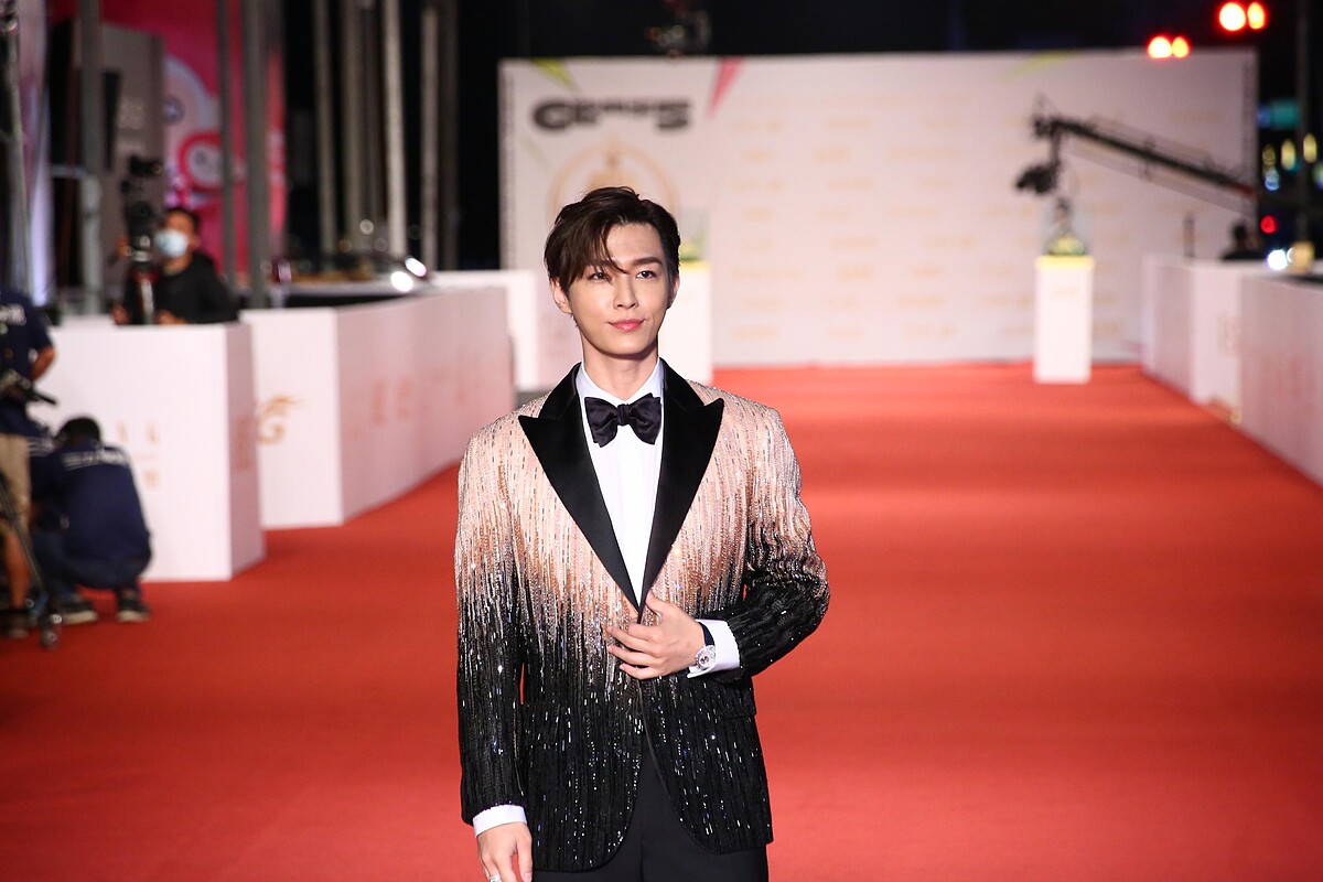 炎亞綸這回以一身「流金西裝」帥氣登場,選擇黑粉漸層的亮片西裝套裝,搭配黑色領結,完美展美男的風範。