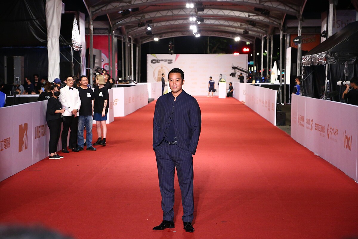 許久未見的張孝全選擇Giorgio Armani深藍色條紋正裝走上紅毯,搭配Christian Louboutin亮面黑色皮鞋,展現紳士十足的男性魅力。