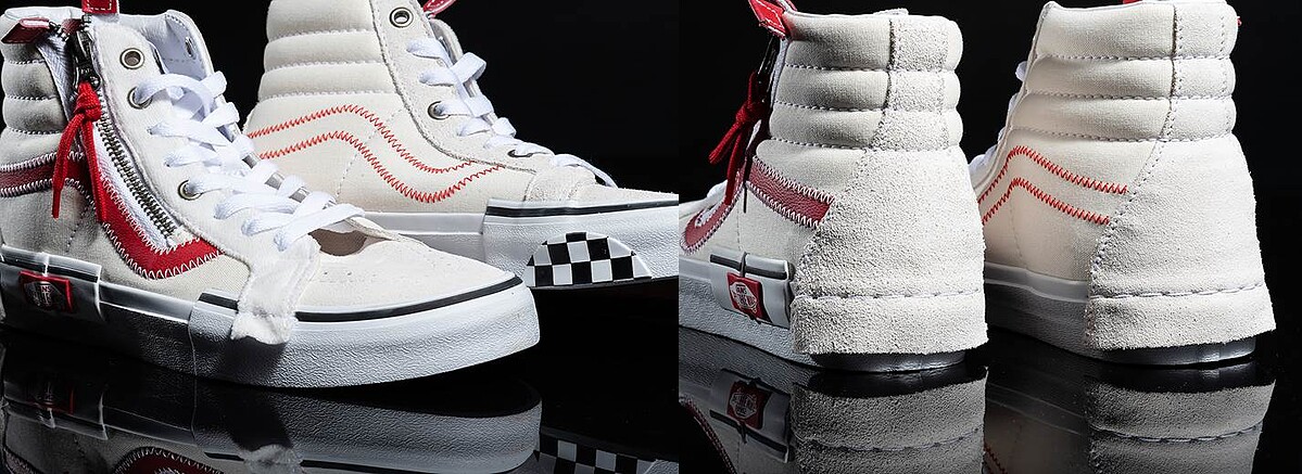 SK8-Hi CAP解構系列鞋款,重塑鞋身結構,融入了很多精彩小細節,像是:拼接材質、鞋內側的格紋圖案、鞋後跟處獨特包覆的設計、內外側特別採取不對襯的色調比例、穿脫方便的拉鍊設計還佐以拉繩點綴,就連車縫線也與眾不同,這些都帶有強烈高級時裝感的精巧思維,可說是一上腳就能擁有全方位無死角的完美,再加上亞洲限定配色,真就只有「必收」二字毋需多言!