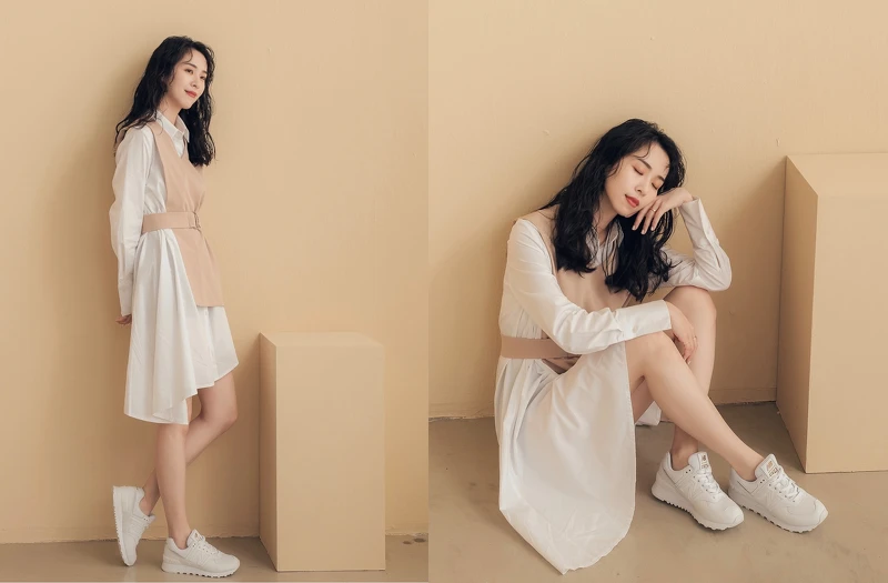 喜歡穿裙裝的曾玄玄,常常苦惱鞋款要如何搭配才能讓個性與優雅並存,所以看到New Balance 574#恣意白鞋款時,她第一眼就愛上低調不招搖、舒適又百搭的它,無論是哪一類型的裙裝都能搭配,而且鞋底厚度能讓女生拉長腿部線條的小心機設計,嬌小女生完全不用擔心身高比例問題,加上獨特應該只有白色,讓溫柔與俐落感同在的特點,穿上後立刻就化身韓風溫柔小姐姐的模樣。