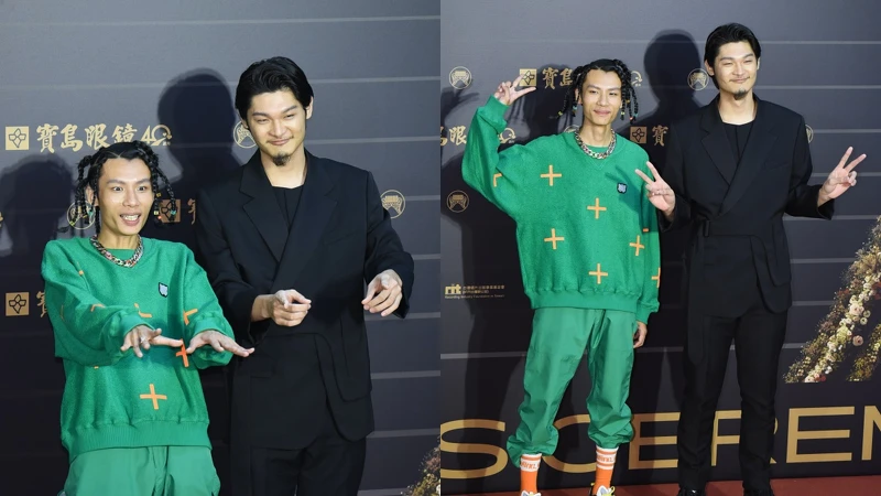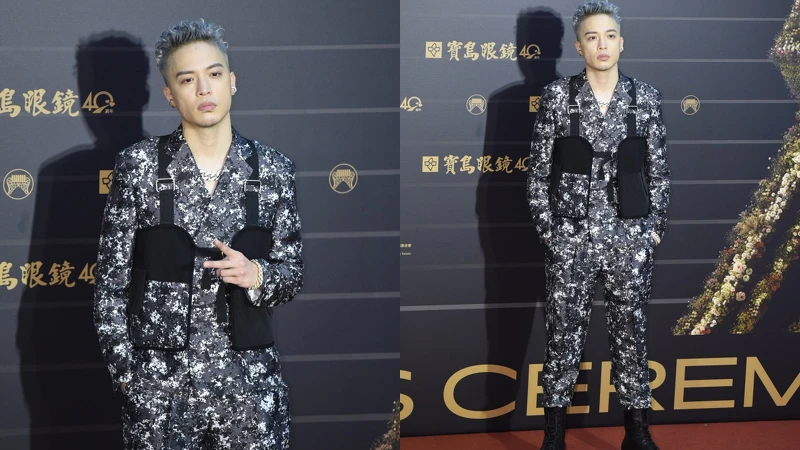 雖然與新人獎無緣,J.Sheon今年角逐最佳國語男歌手獎,爭奪歌王寶座,且有別於平時給人的隨性、休閒氣象,這回紅毯,選擇台灣設計師JUST IN XX所設計的迷彩西裝、吊帶背心,替這身軍裝造型增添一股型男魅力,個性相當十足,在髮型上,更特意選擇銀灰色的All Back髮型,營造前衛的未來感。