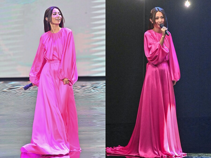近期才剛結束巡迴演唱會的Hebe,今日以表演嘉賓再替大家帶來唯美的演出。身著流線型的抓褶圓領搭配落地A字裙襬,既浪漫又動人,畫面美得不像話!