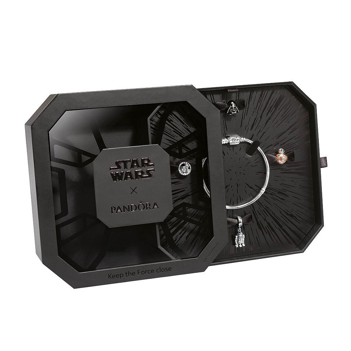 Star Wars™ x Pandora 聯名珠寶系列,渴慕原力黑暗力量黑武士、正義光明面的莉亞公主、超受歡迎的R2-D2™與C-3PO™、初次登場於《星際大戰:原力覺醒》中的BB-8™機器人、韓索羅好搭檔的丘巴卡、Disney+影集《曼達洛人》中、擁有原力且充滿好奇心的討喜The Child、限量珍藏版《星際大戰》Logo...等造型串飾,以及代表正義的藍色光劍及代表邪惡的紅色光劍吊飾、《星際大戰》™經典標誌的925銀蛇鏈手鏈,透過這些經典符碼與迷人角色所幻化而成的精美珠寶,提供給全球星戰迷在打造個性化造型上有更多樣的選擇。
