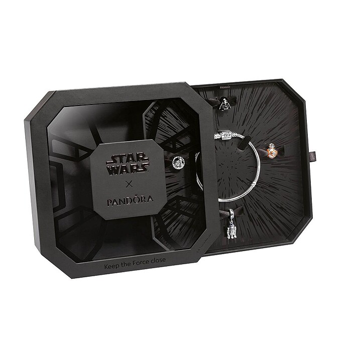 10月1日正式販售的Star Wars™ x Pandora 聯名珠寶系列,其實還推出「原力同在 聯名限定禮盒」,只要一次購入兩件Star Wars™ x Pandora系列珠寶,就可以獲得,對星戰鐵粉來說完全沒難度,就怕大家搶到缺貨,這個秋冬想釋放神秘星戰原力,那麼入手速度真的就必須光速搶啦!