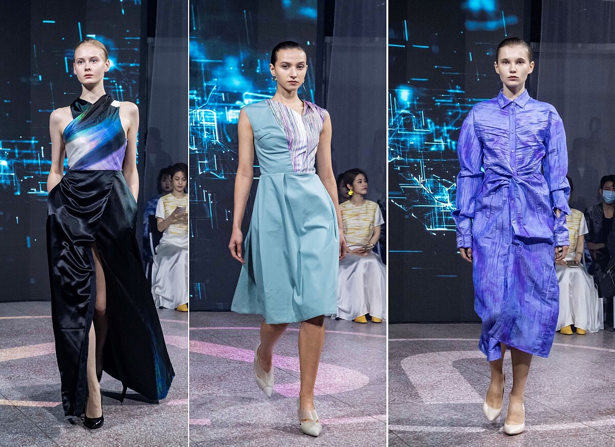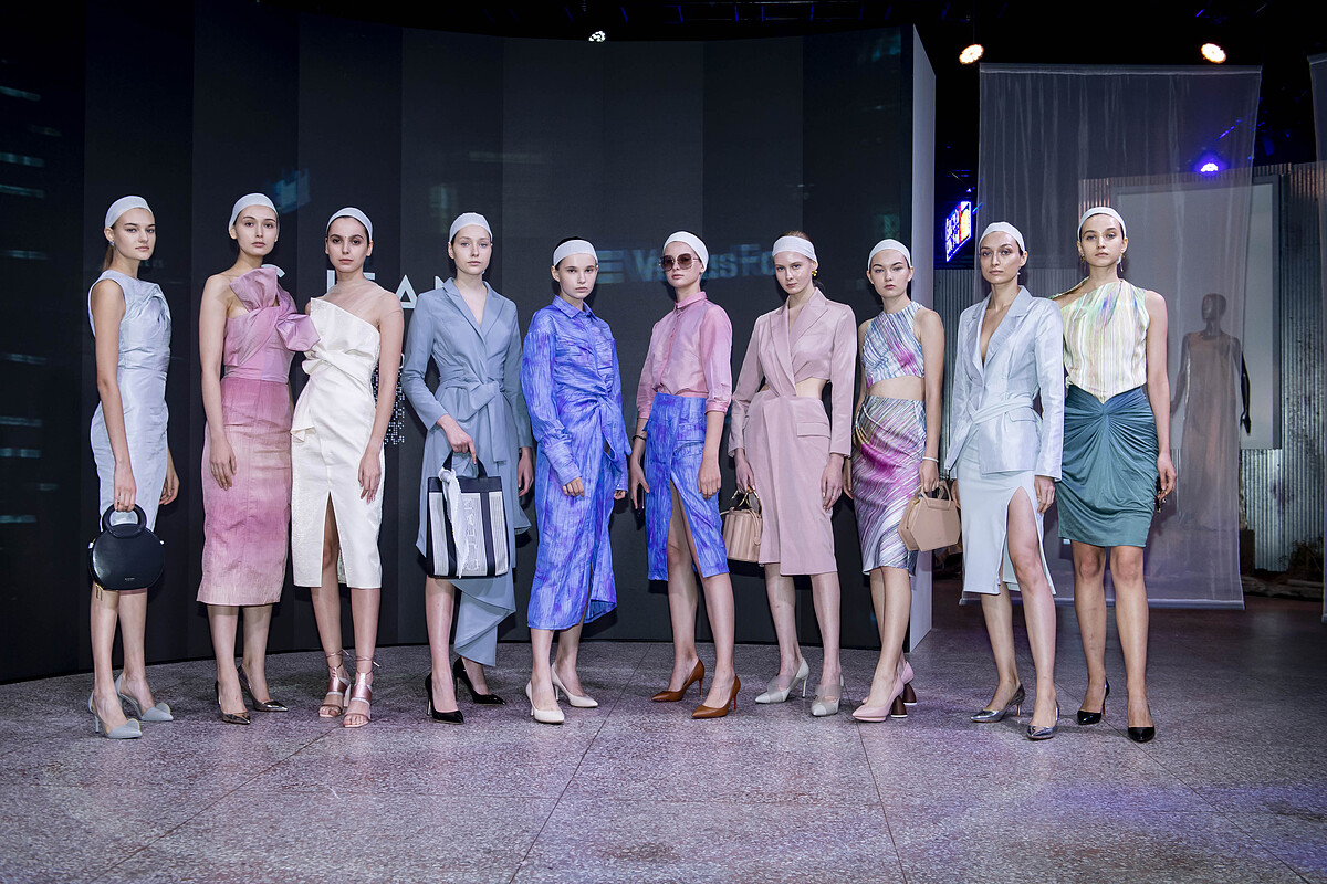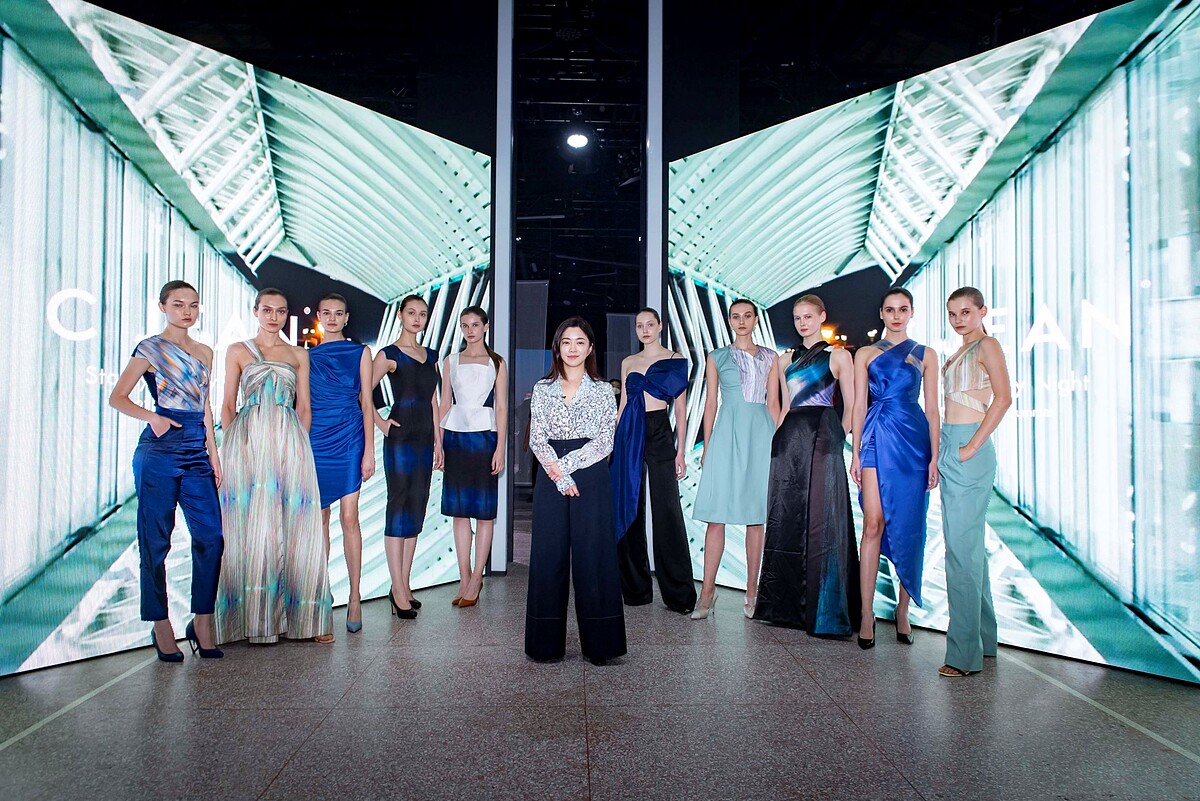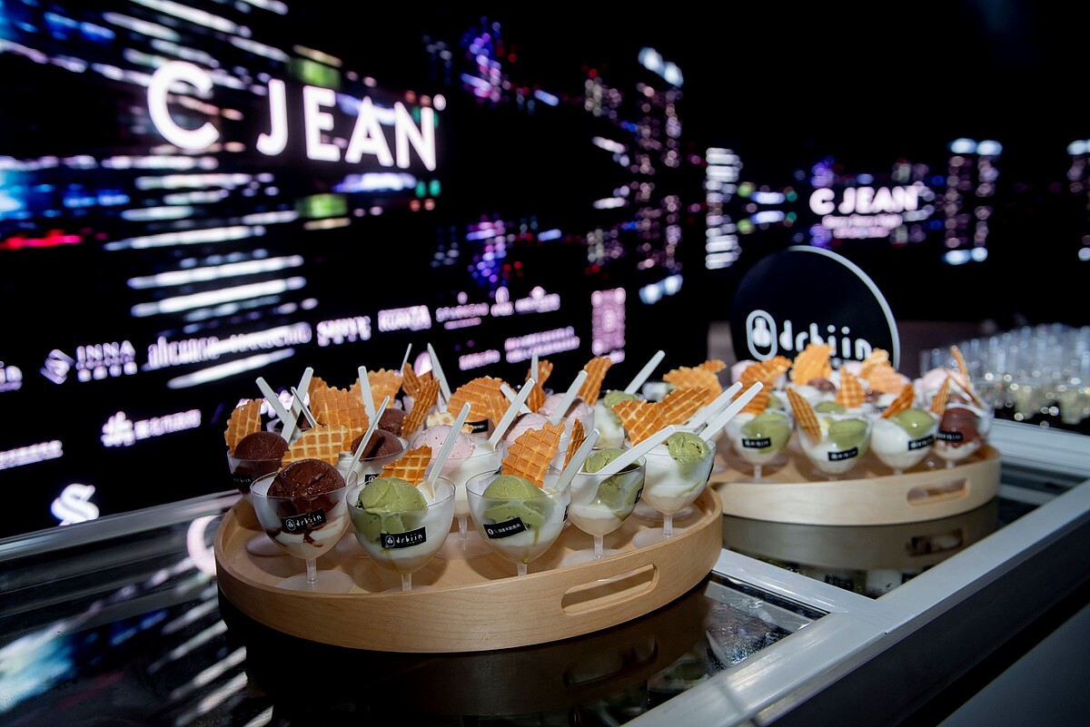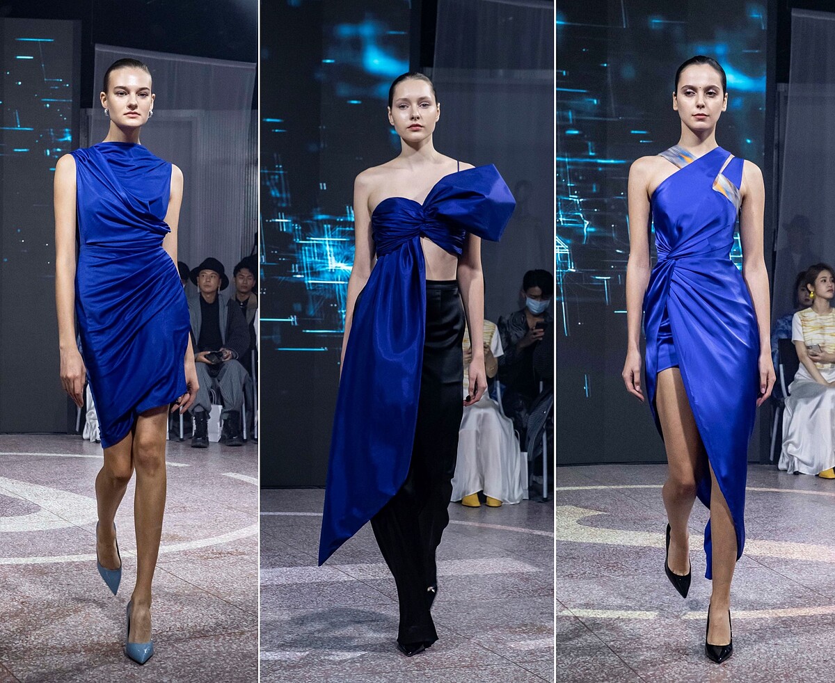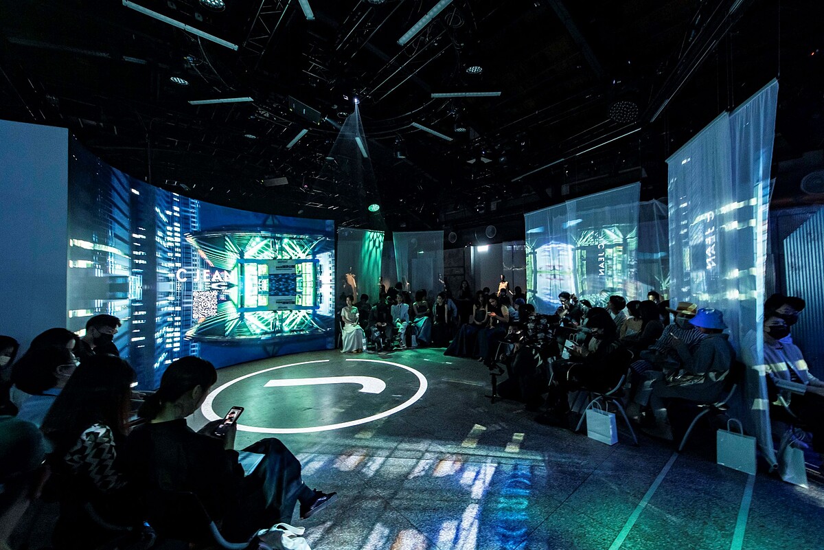 這次的夏系列數位展演現場,更結合了許多品牌共襄盛舉,門口旁吧台區由Dr.biin果然義式冰研提供的冰淇淋、萃取台灣茶芬芳的HANSCHI香氛片、秀場模特兒們在後台使用的Inna Organic保濕面膜、Romana New York與GOLDWELL產品替模特兒打造出精緻妝髮、模特兒穿著的Absence流線型鞋履、鉐業工藝提供的精緻金工技藝鑄造首飾…在在都滿足觀者視、聽、味、嗅覺需求,香味環繞在四周、耳邊響起Starry Starry Night,同在這片星空下看著遠方的希望,原來夢想就在不遠方。