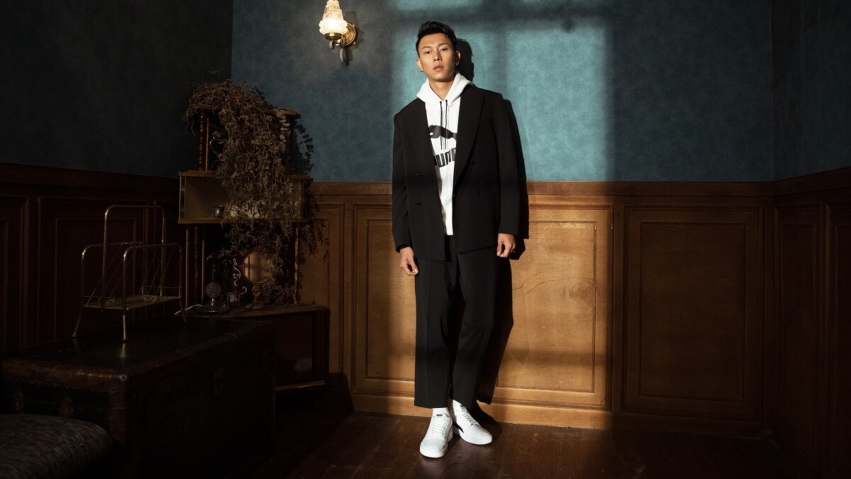 擁有自己獨具時尚品味的瘦子E.SO,欽點超狂傳奇背景鞋款Ralph Sampson拍攝形象照,鞋身以全白皮革包覆,鞋側車縫上黑色皮革Puma招牌彎刀,並鑲上金色Ralph Sampson簽名字樣,鞋頭則保有籃球鞋的懷舊網眼設計,兼具運動休閒風格與潮流元素,完美襯托瘦子的嘻哈男神風範。