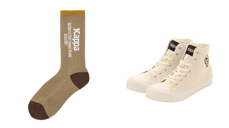 除了聯名服飾外,GU更順勢推出中筒襪與長襪,以及黑、白兩款帆布鞋,帆布鞋款印有Kappa代表性一對背靠背的男女人形剪影的Logo標誌,並加入經典Kappa鞋標。GU x Kappa聯名系列已於全台門市及網路商店上架。