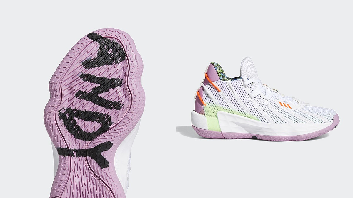Dame 7則以巴斯光年為設計,鞋面以白色為主調,並點綴上粉紫色及螢光綠於鞋身,鞋側的TPU保護片就如同巴斯光年招牌盔甲,鞋後跟的Danger標誌則呼應巴斯光年背後的太空噴射器,鞋身內層則注入滿版的三眼怪圖案,相當萌趣。