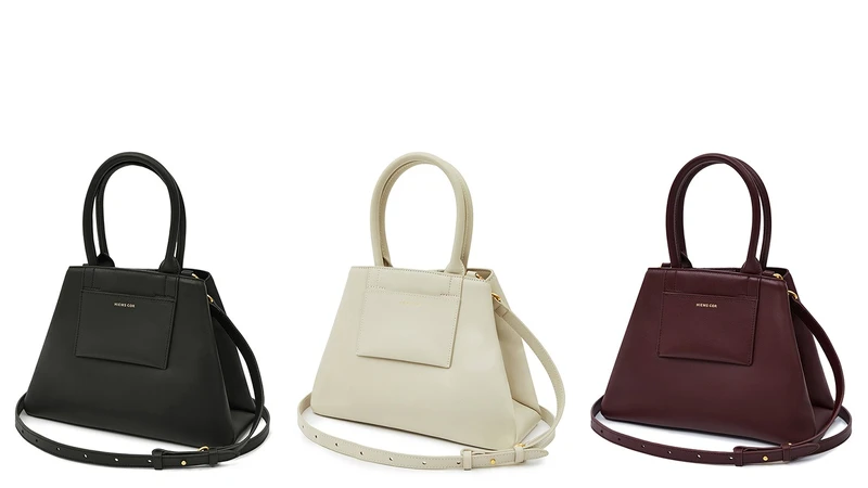 向來講求容量與便利性的Hiems Cor,全新一季的手提包,將包內的夾層重新分佈,讓收納更有條理,在外型上,包款則以梯形的包型,配上馬蹄外型的皮革提把,並於包面燙上品牌Logo,整體優雅且極具氣勢,並推出黑、白、酒紅等五種配色選擇。