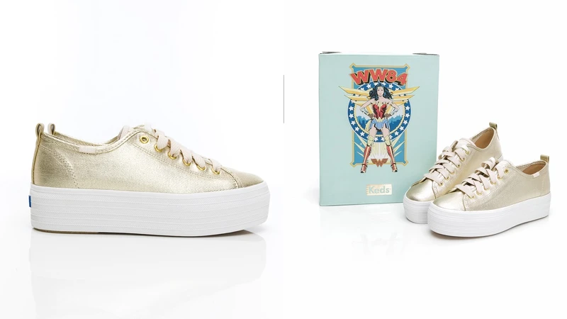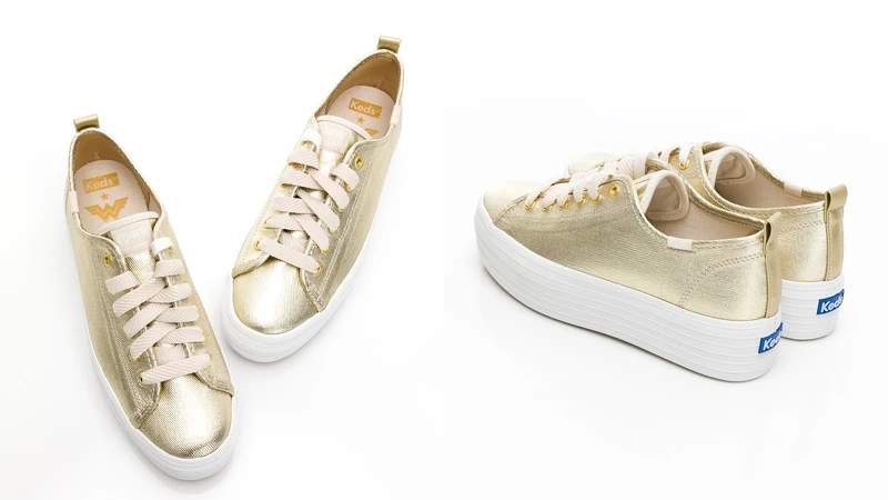 Keds經典小白鞋加了4公分厚底設計!攜手神力女超人推出奢華金限量聯名鞋履