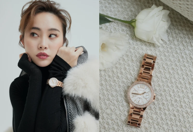 這個秋冬無論造型如何百變,彤彤都熱愛以Michael Kors的「紐約甜心撞色矽膠玫瑰金腕錶」及「CAMILLE輕奢三眼晶鑽手錶玫瑰金腕錶」,這兩只百搭出色又搶眼的時尚黑與精緻玫瑰金色調風格腕錶,融入各式穿搭造型中,透過她的演繹更能感受到錶款本身在時尚混搭上能夠輕鬆駕馭自如的「優秀錶現力」。
