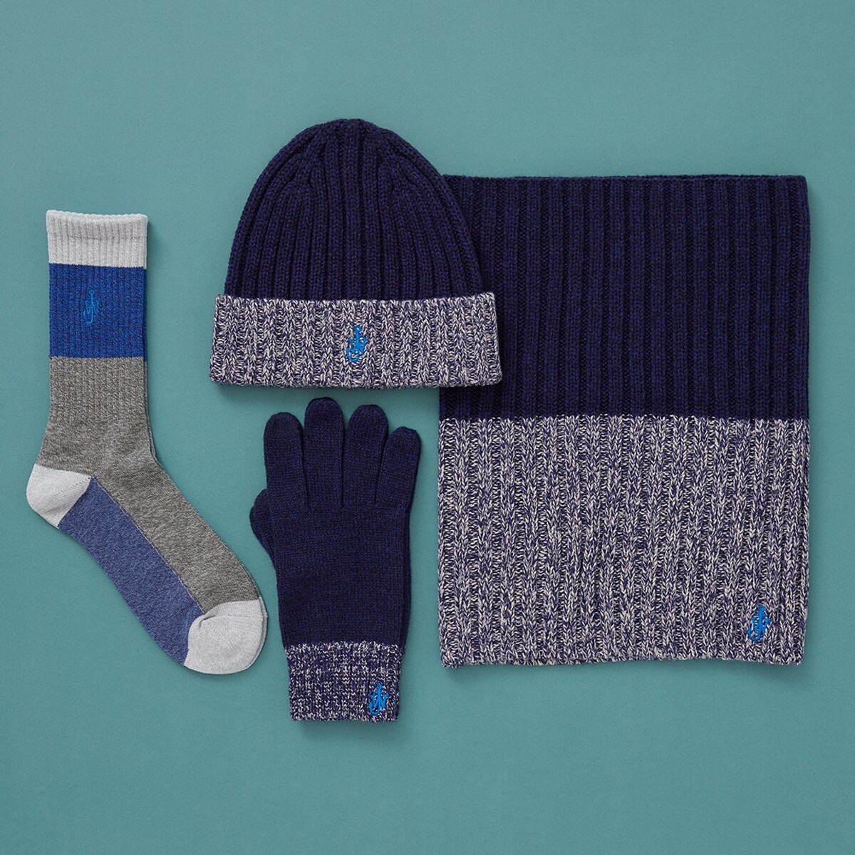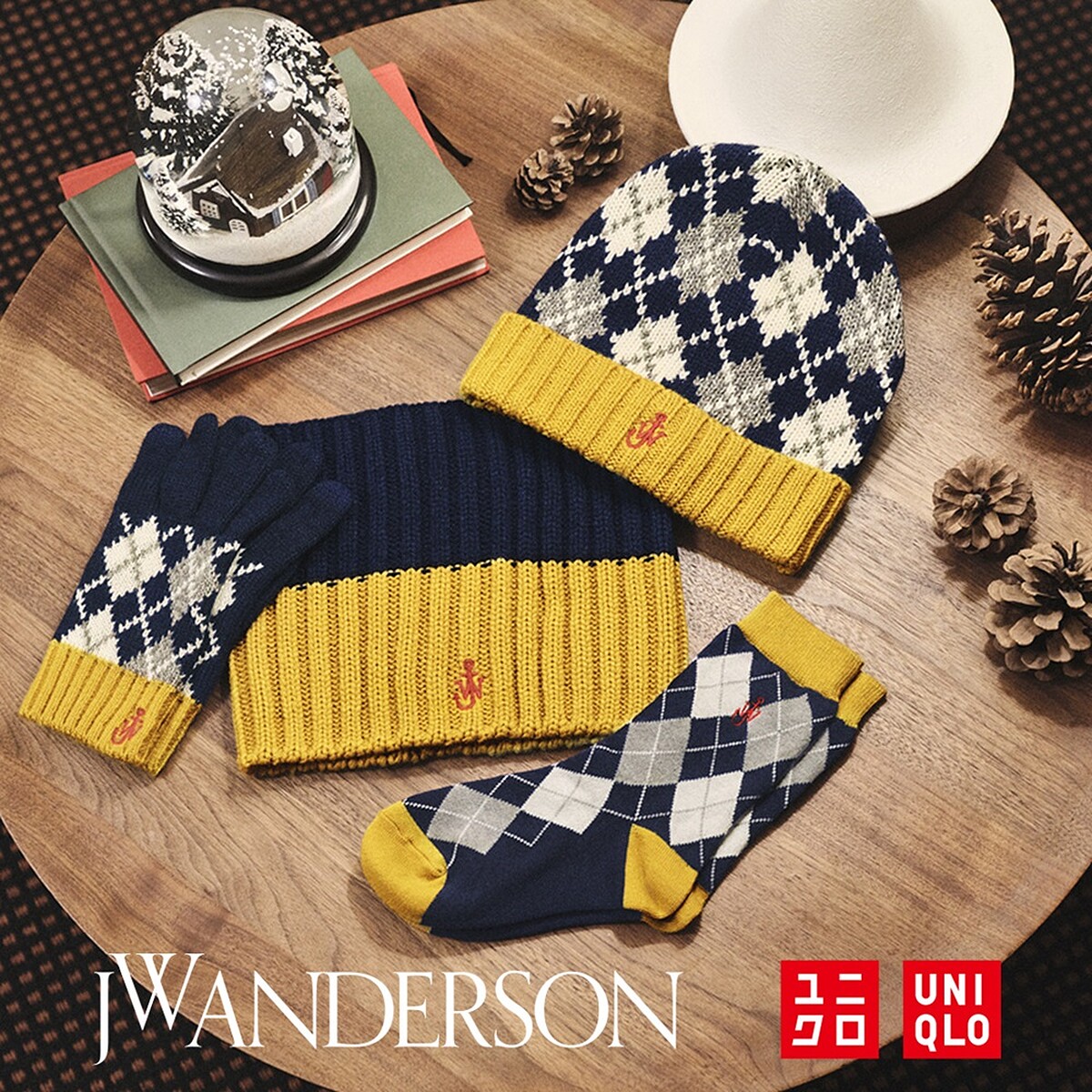 JW Anderson以英國度假小屋作為設計靈感,想像在假期裡前往倫敦郊外小屋,度過悠閒美好的時光,運用英國冬季經典菱格紋、蜂窩狀與活潑撞色元素當作基底,搭配JW Anderson繽紛設計與標誌性Logo,再使用混紡毛線編織技術融合HEATTECH保暖科技布料,打造節日時尚配件系列。