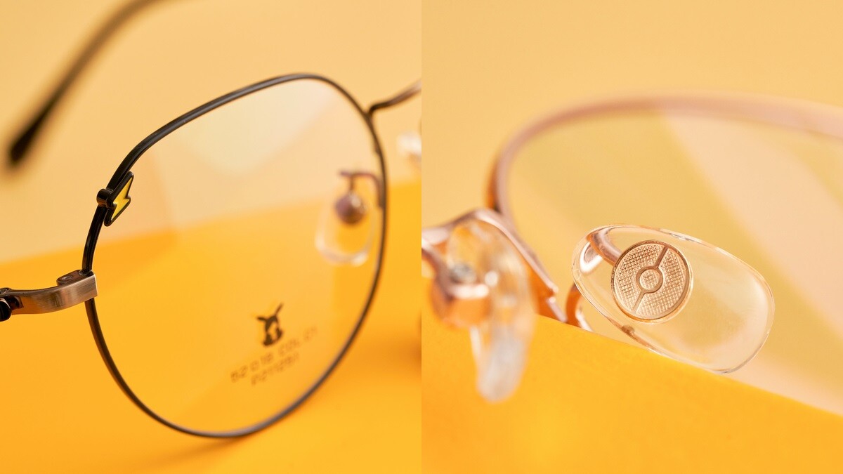 寶可夢典藏款系列鏡架選用金屬材質打造,在鏡片、鏡腿末端以及鼻墊等細節處加入寶可夢元素,像是皮卡丘閃電標誌、寶貝球...等設計。