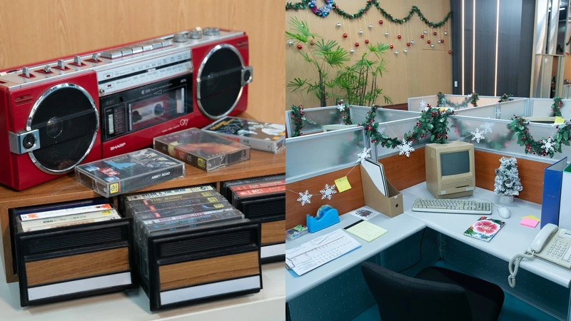 隨著年末一波波歡樂佳節到來,Gucci延續品牌一貫的復古調性,以舊時代辦公室場景為主題,拍攝Gift Giving假日禮讚形象影片,帶領大家重返80年代的歡樂氣氛。品牌更將影片中的復古辦公室搬到台北,制式辦公格局、鐵製文件櫃、笨重舊式電腦以及懷舊皮格沙發,完美複製影片中的每一幕場景。