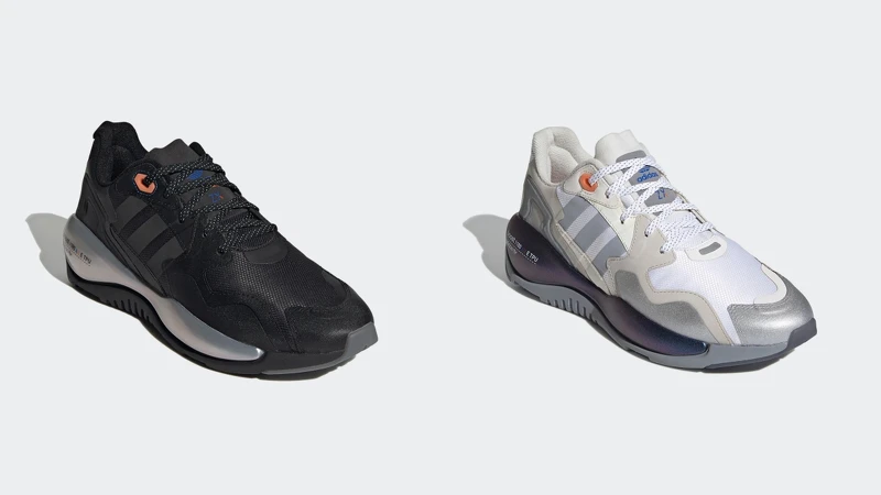 分別推出帥氣黑、銀白色兩雙鞋款,搭載銀色流線型TPU裝置及Boost中底,更以異材質拚接鞋面堆疊出層次感。